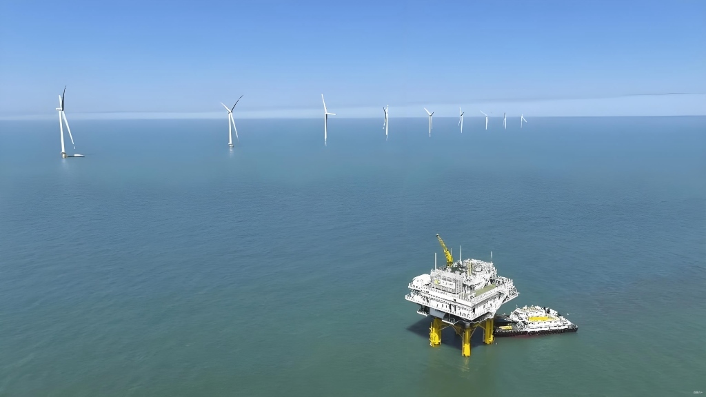 圖為山東省東營市的渤中海上風(fēng)電項(xiàng)目。新華社發(fā)