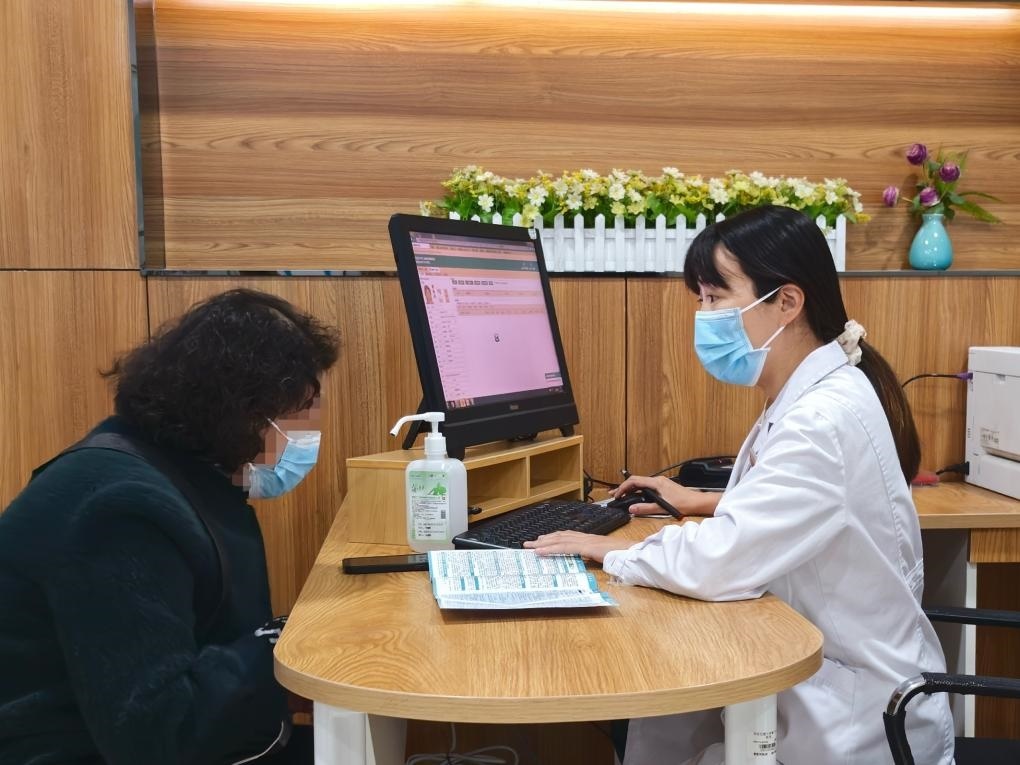 西安交通大學第二附屬醫(yī)院健康管理部醫(yī)師楊楠為患者解讀體檢項目。新華社發(fā)