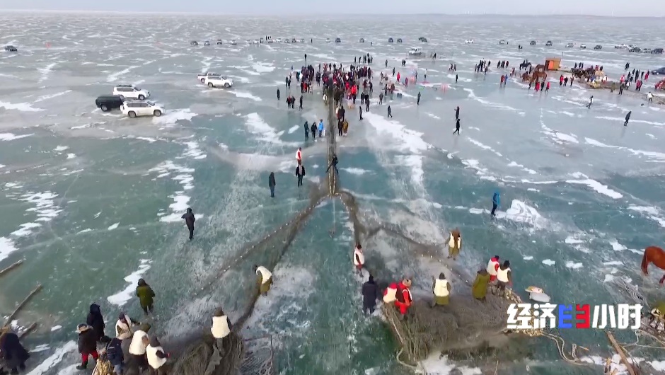 為了吸引游客,查干湖還推出私人訂制捕魚、冰下盲盒等新項(xiàng)目。100米長的掛網(wǎng),游客組隊(duì)拉拽,親手捕魚后,可以直接送進(jìn)后廚做成鐵鍋燉。