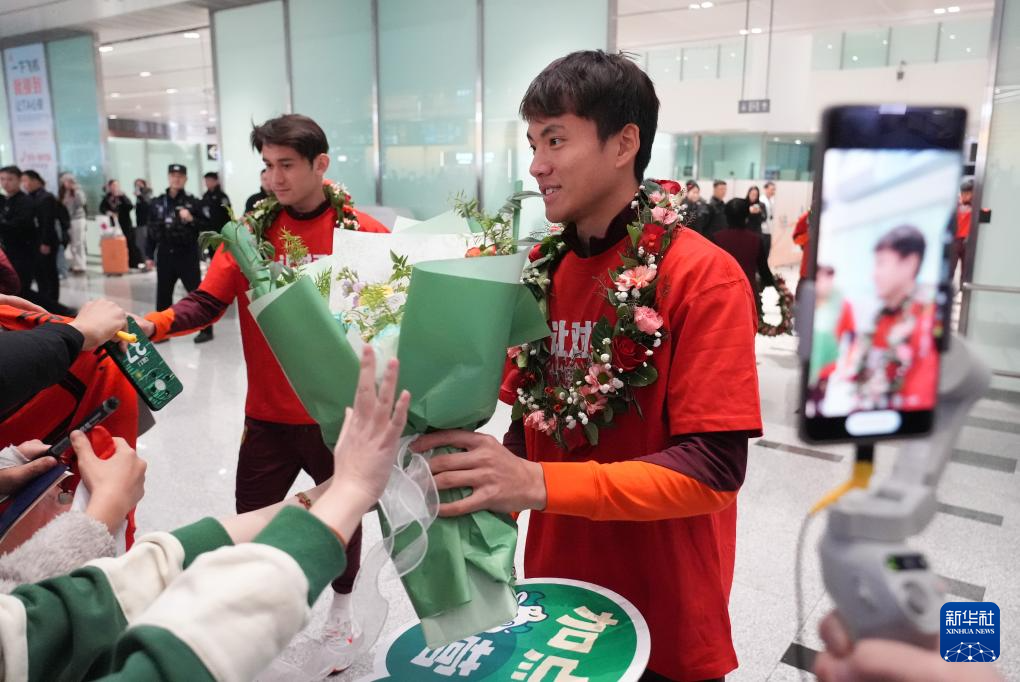 1月26日,在沙特阿拉伯奪得U23男足亞洲杯亞軍的中國(guó)隊(duì)抵達(dá)北京大興國(guó)際機(jī)場(chǎng)。