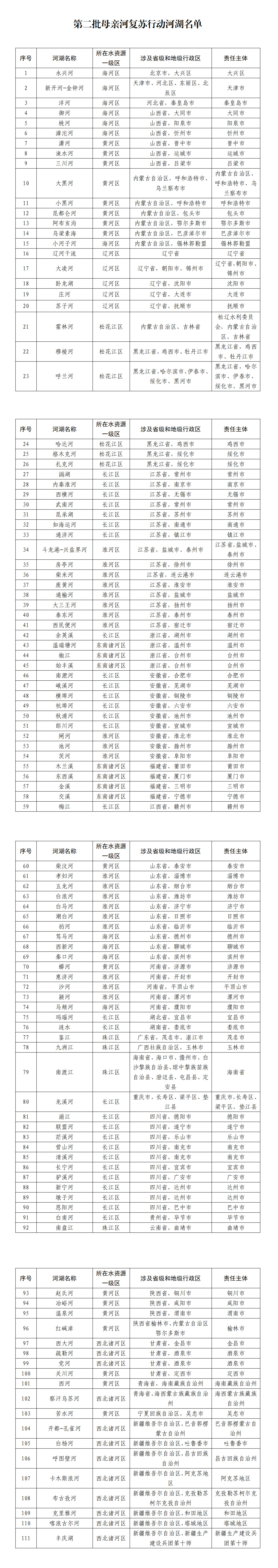 2022年以來,水利部圍繞解決河道斷流、湖泊萎縮干涸問題,在全國率先選取了88條(個)河(湖)開展母親河復蘇行動。為進一步擴大母親河復蘇行動范圍,水利部聚焦河道斷流、湖泊萎縮、水動力不足等問題,全面分析河湖水資源、水生態(tài)狀況,將復蘇需求迫切、具有復蘇可行性的111條(個)河(湖)納入第二批母親河復蘇行動,涉及29個省份和新疆生產(chǎn)建設兵團。