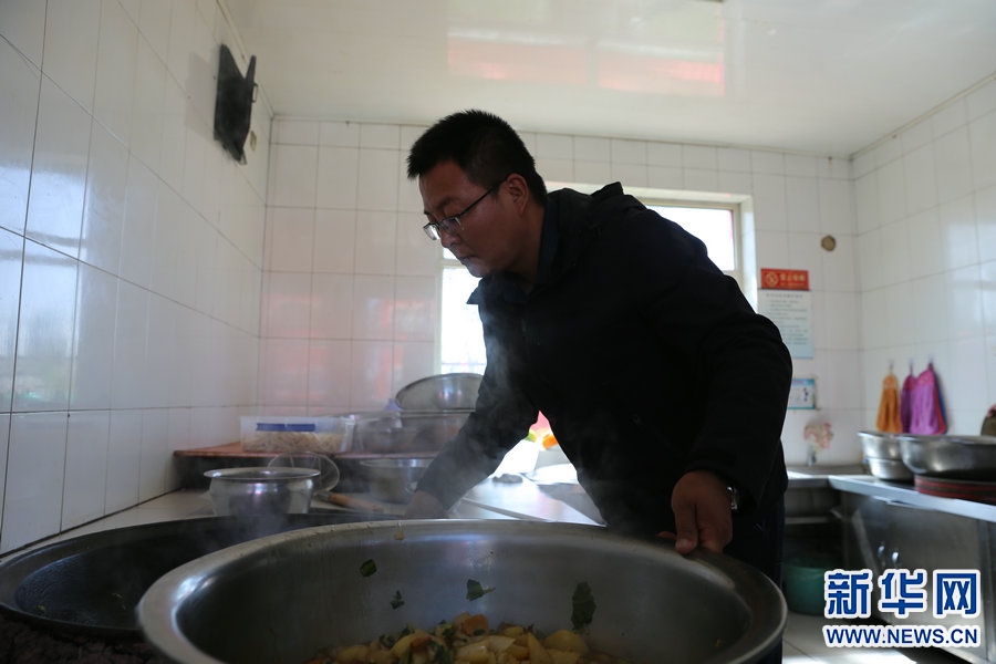張慧聰?shù)囊惶鞆牧璩?點(diǎn)開始,喂豬、燒鍋爐、摘菜、盯食材、上課、查宿舍,豬一天要喂三次、鍋爐也要頻繁關(guān)注、三餐食材一頓也不能落、四個(gè)年級(jí)每班每天都要上課、每隔一段時(shí)間還得清理旱廁……這里沒有一間屬于他的辦公室,但這里卻處處是他的“辦公室”。新華網(wǎng) 李倩攝
