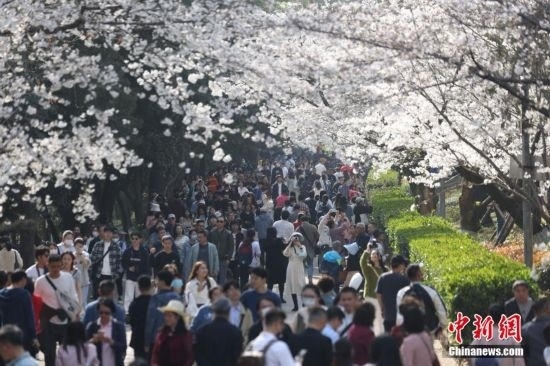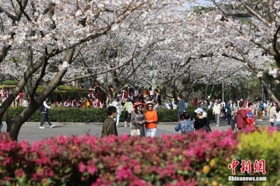 3月15日,武漢大學(xué)賞櫻預(yù)約首日,櫻花大道、鯤鵬廣場(chǎng)附近人潮涌動(dòng)。今年櫻花開放期間,武漢大學(xué)延續(xù)“實(shí)名限額、網(wǎng)絡(luò)預(yù)約、雙重核驗(yàn)”做法,面向社會(huì)公眾實(shí)行免費(fèi)預(yù)約賞櫻制,工作日每天預(yù)約限額1.5萬(wàn)人,周末每天預(yù)約限額3萬(wàn)人。此外,還將于3月18日舉辦醫(yī)護(hù)賞櫻專場(chǎng),邀請(qǐng)?jiān)踽t(yī)療隊(duì)及湖北省內(nèi)抗疫醫(yī)護(hù)人員來(lái)校賞櫻,并在弘毅門(原西門)舉行歡迎儀式。 趙軍 攝