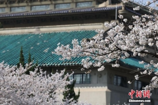 武漢大學(xué)櫻花樹下人潮涌動(dòng)。