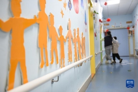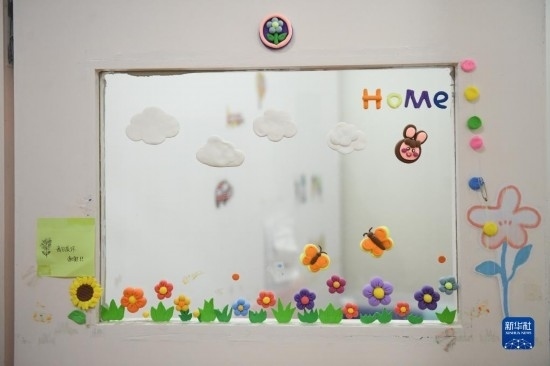 這是自閉癥青少年和老師一起裝扮的教室門(mén)(3月29日攝)。