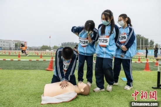 據(jù)知,共有168名學生組成28支隊伍參加比賽。比賽前,北京市大興區(qū)紅十字會為師生開展了急救技能培訓和操作訓練。