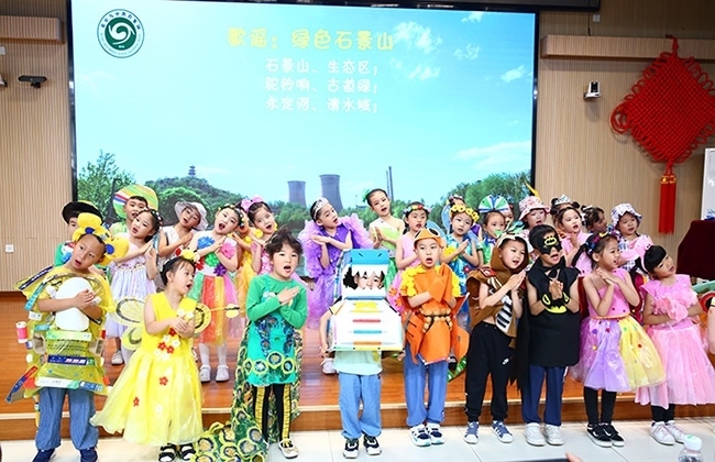 此外,九中教育集團(tuán)所屬的首鋼幼教金頂街園等幼兒園的孩子們上演了精彩的“幼兒生態(tài)保護(hù)時(shí)裝秀”。他們身穿利用生活廢棄物品精心制作成各種造型的服裝,巧妙傳遞出了“變廢為寶”的環(huán)保理念。歌謠表演《綠色石景山》也為孩子們上了一堂生動(dòng)的爭(zhēng)做環(huán)保小衛(wèi)士、友愛(ài)相伴小動(dòng)物的課程。