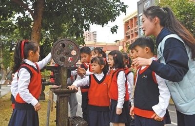 2022年3月,九龍坡區(qū)教委印發(fā)《關于推進中小學集團化辦學的意見》,謝家灣金茂小學成為謝家灣教育集團一體化辦學成員校。謝家灣金茂小學的前身是重慶建設工業(yè)(集團)有限公司子弟學校,約1/3的教師曾是工廠職工?!盎趯W校情況,我們強調培養(yǎng)學生養(yǎng)成熱愛勞動的習慣,形成陽光心態(tài)。”謝家灣金茂小學黨總支書記楊永財指著校園內擺放的老舊機床說,“重慶建設工業(yè)(集團)有限公司發(fā)展歷史厚重,學校積極挖掘紅色資源,給孩子們講好革命歷史,上好思政課。”