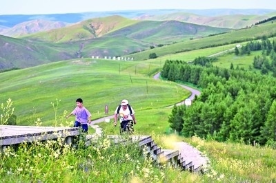 家長(zhǎng)與孩子在內(nèi)蒙古大青山國(guó)家級(jí)自然保護(hù)區(qū)徒步。新華社發(fā)