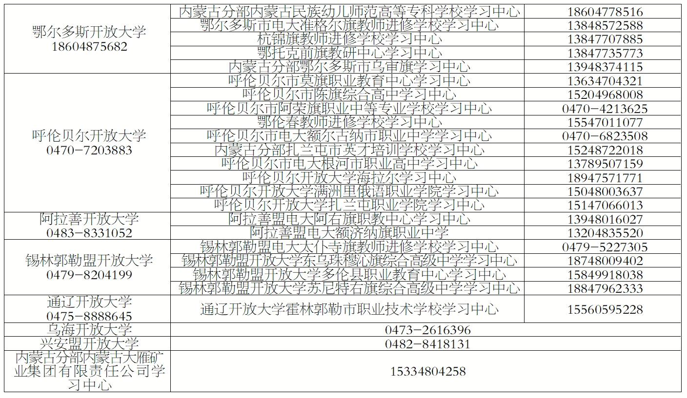 二、內(nèi)蒙古開放大學(xué)提醒社會公眾和廣大學(xué)生,我校嚴(yán)格按照國家開放大學(xué)批復(fù)的學(xué)習(xí)中心開展辦學(xué)行為,從未在內(nèi)蒙古地區(qū)授權(quán)代理機(jī)構(gòu)或委托個人以“國家開放大學(xué)”或“內(nèi)蒙古開放大學(xué)”名義代理招生。任何自稱與“內(nèi)蒙古開放大學(xué)”合作招生,宣稱“不用學(xué)習(xí)”、“不用考試”、“免試免考拿證”、“包學(xué)包過”、“報名=畢業(yè)”等虛假宣傳以及亂收費行為,均為違法行為。我校享有“內(nèi)蒙古開放大學(xué)”名稱的專屬使用權(quán),任何單位和個人未經(jīng)我校允許均無權(quán)以我校名義開展對外宣傳。若查實相關(guān)機(jī)構(gòu)或個人存在侵權(quán)行為,我校將保留一切訴之法律途徑解決的權(quán)利,由此造成的后果全部由侵權(quán)行為人承擔(dān)。