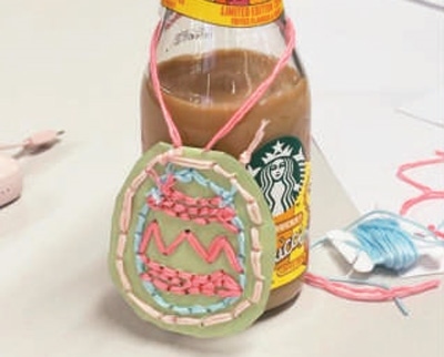 袁易如參加手工活動(dòng)時(shí)制作的瓶子掛牌。
