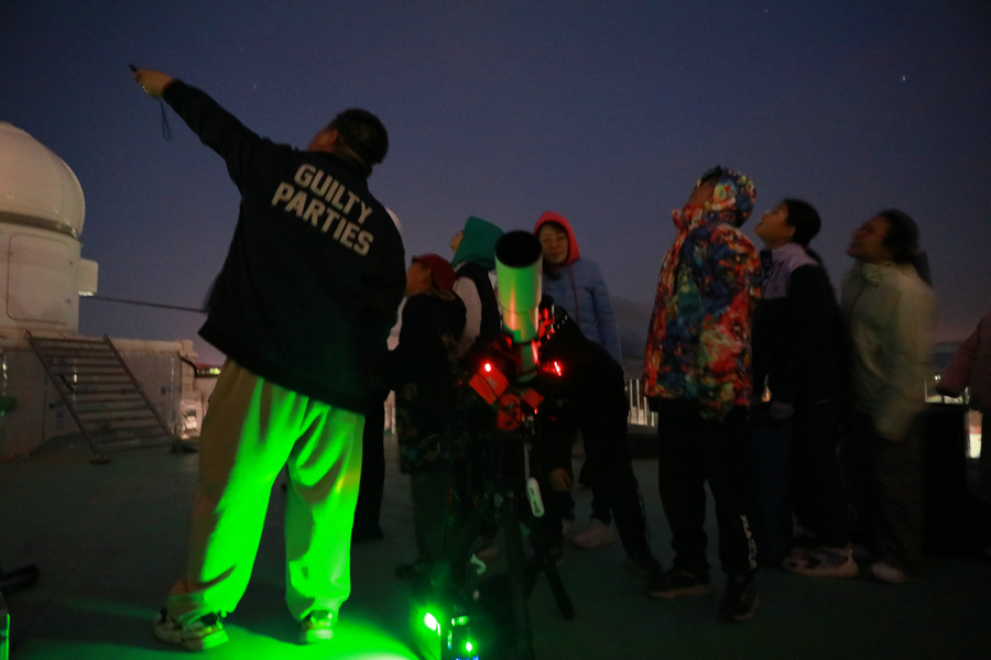 夜幕降臨,參加活動的學(xué)員家庭走進(jìn)悟空天文臺,近距離接觸“內(nèi)蒙古天眼”——自治區(qū)最大的單口徑光學(xué)望遠(yuǎn)鏡,學(xué)習(xí)望遠(yuǎn)鏡構(gòu)造與應(yīng)用原理。在老師的指導(dǎo)下,通過望遠(yuǎn)鏡觀測春季星空,辨識星座,領(lǐng)略土星光環(huán)、月球隕石坑等天象奇觀。活動還特別設(shè)置了“天文趣味知識大挑戰(zhàn)”,以互動問答鞏固學(xué)習(xí)成果,孩子們爭相搶答,展現(xiàn)出對宇宙的無限好奇。