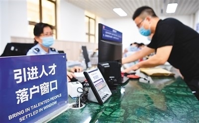 外省人員在海南省??谑泄簿置捞m分局人口和出入境管理服務(wù)中心辦理人才落戶業(yè)務(wù)。 新華社記者 郭 程攝