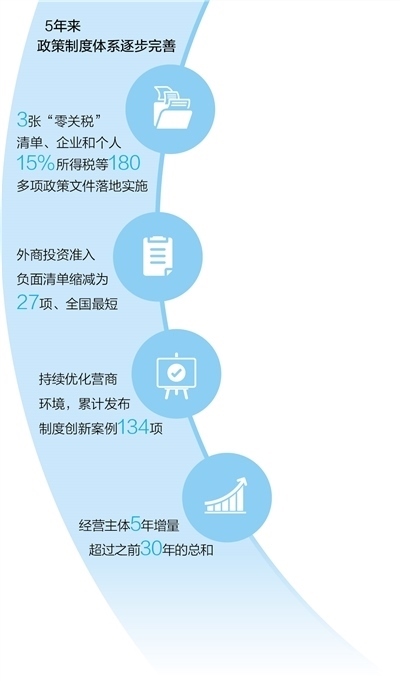 持續(xù)優(yōu)化的營商環(huán)境是海南自貿(mào)港建設(shè)的重要支撐。5年來,海南深入推進營商環(huán)境建設(shè),持續(xù)打造法治化、國際化、便利化和公平、透明、可預(yù)期的營商環(huán)境。