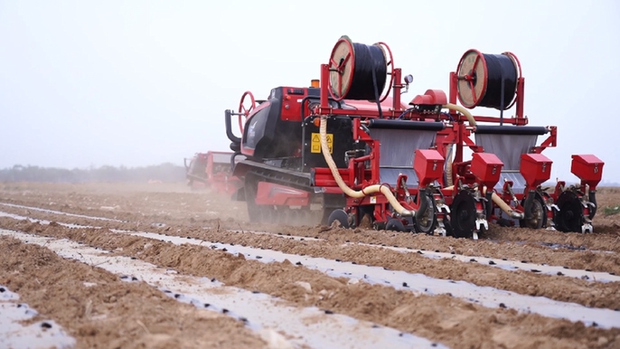 近日,在山東省德州市武城縣中椒英潮辣業(yè)發(fā)展有限公司辣椒種植示范基地,一臺無人駕駛的辣椒直播機(jī)來回穿梭,不僅將辣椒種子播種下去,同時一體化實(shí)現(xiàn)了地膜覆蓋,這也是德州市首次實(shí)現(xiàn)辣椒機(jī)械直播。