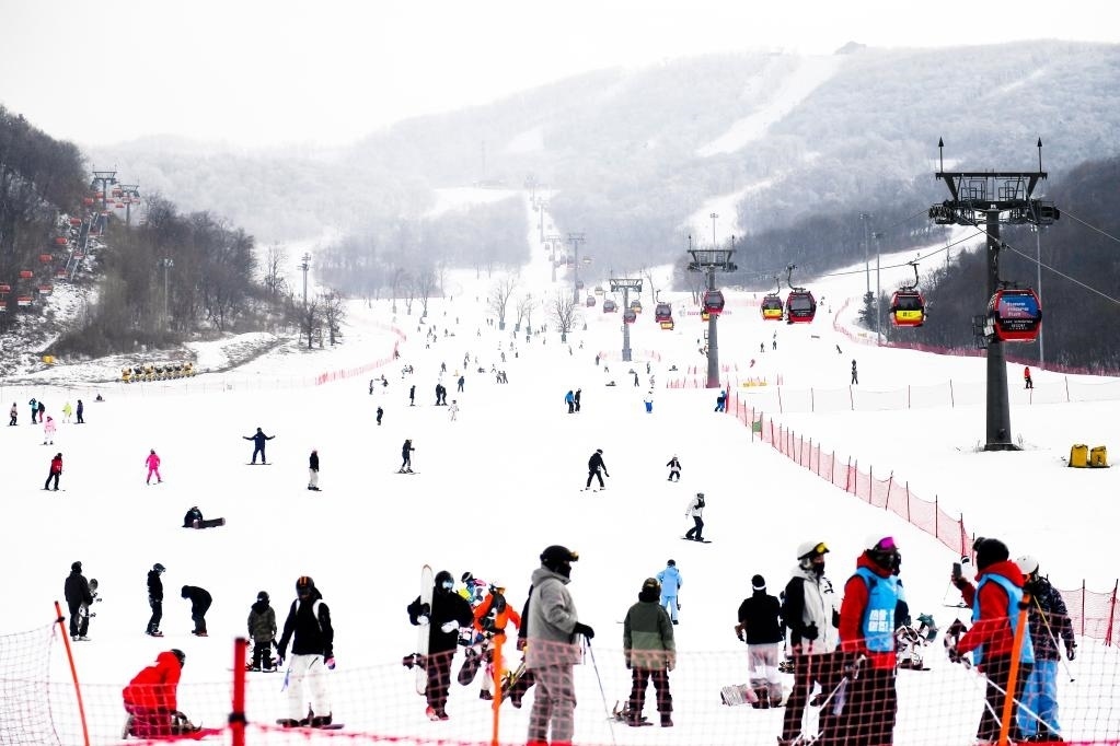 1月23日,滑雪愛(ài)好者在吉林市萬(wàn)科松花湖度假區(qū)滑雪。新華社記者 許暢 攝