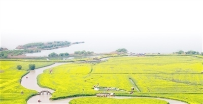 江蘇省揚(yáng)州市高郵市湖上花海景區(qū),油菜花競相綻放。周社根攝(人民視覺)