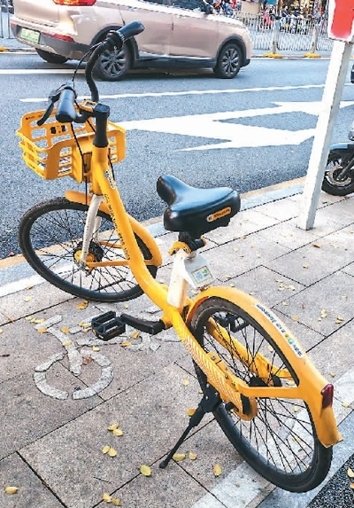 廣東深圳福田區(qū)福中路上,一輛共享單車停放于專門劃定的還車點內。本報記者 盧澤華攝