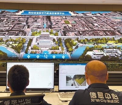 客流量浮動(dòng)、監(jiān)測(cè)點(diǎn)位數(shù)據(jù)變化、AI風(fēng)險(xiǎn)預(yù)警……在西安城墻管委會(huì)信息中心,一個(gè)個(gè)詳細(xì)的實(shí)時(shí)數(shù)據(jù)每天都在大屏幕上滾動(dòng)呈現(xiàn)。輕擊鼠標(biāo),虛實(shí)結(jié)合的數(shù)字“城墻”便出現(xiàn)在人們眼前,從外部的磚瓦彩繪到內(nèi)部的建筑結(jié)構(gòu),透過(guò)“數(shù)字方艙”超大屏端頁(yè)面,西安城墻的各種信息映入眼簾。這座“虛擬城墻”便是西安城墻數(shù)字方艙綜合管理平臺(tái)的一部分。近年來(lái),西安城墻運(yùn)用數(shù)字孿生、人工智能、大數(shù)據(jù)、物聯(lián)網(wǎng)、地球物理等前沿技術(shù),與高校、科研院所和骨干企業(yè)共建,打造了一套集文物保護(hù)、文旅運(yùn)營(yíng)、應(yīng)急管理、防汛指揮等功能于一體的“文化遺產(chǎn)數(shù)字化保護(hù)利用綜合解決方案”,實(shí)現(xiàn)了關(guān)鍵技術(shù)突破及文保文旅數(shù)據(jù)的融合共享。