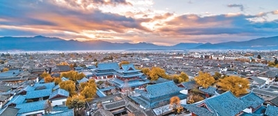 航拍麗江古城。