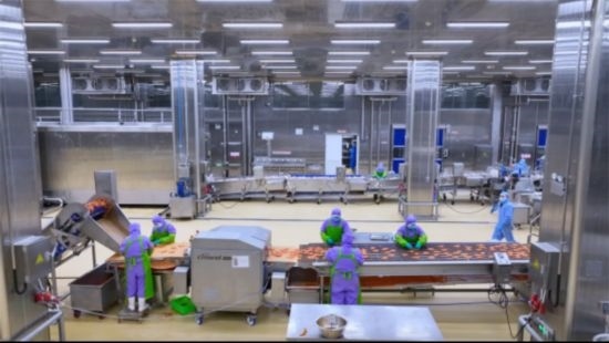 初夏時節(jié),膠東半島的微風(fēng)中帶著一絲清爽,而春雪集團的生產(chǎn)基地內(nèi)卻是一派熱火朝天的景象。走進春雪集團的生產(chǎn)廠區(qū),廠房里的溫度、濕度甚至空氣流動都在嚴密控制之下,身穿防護服的員工們在現(xiàn)代化流水線上有條不紊地操作。眼前的白羽雞在檢驗、宰殺、分割、滾揉、調(diào)理與包裝等環(huán)節(jié)中“闖關(guān)”般地被一一標記、質(zhì)檢,井然有序地進入下一道工序。