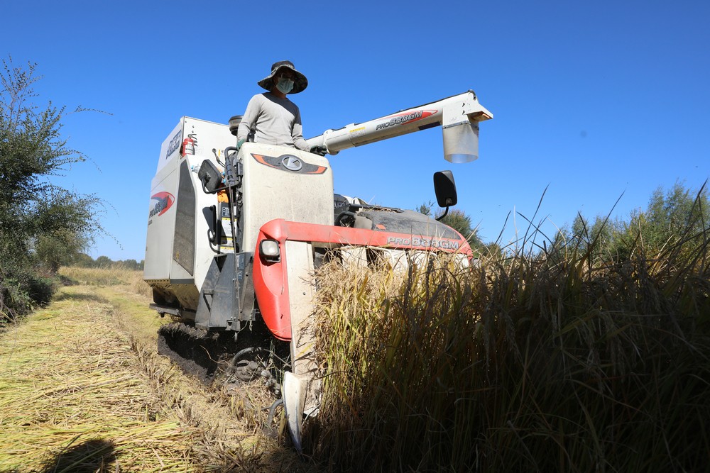 金秋時(shí)節(jié),內(nèi)蒙古興安盟烏蘭浩特市義勒力特鎮(zhèn)的廣袤稻田化作金色海洋。沉甸甸的稻穗在陽光下泛著金色的光芒,收割機(jī)穿梭于田野間,將豐收的喜悅裝進(jìn)糧倉。