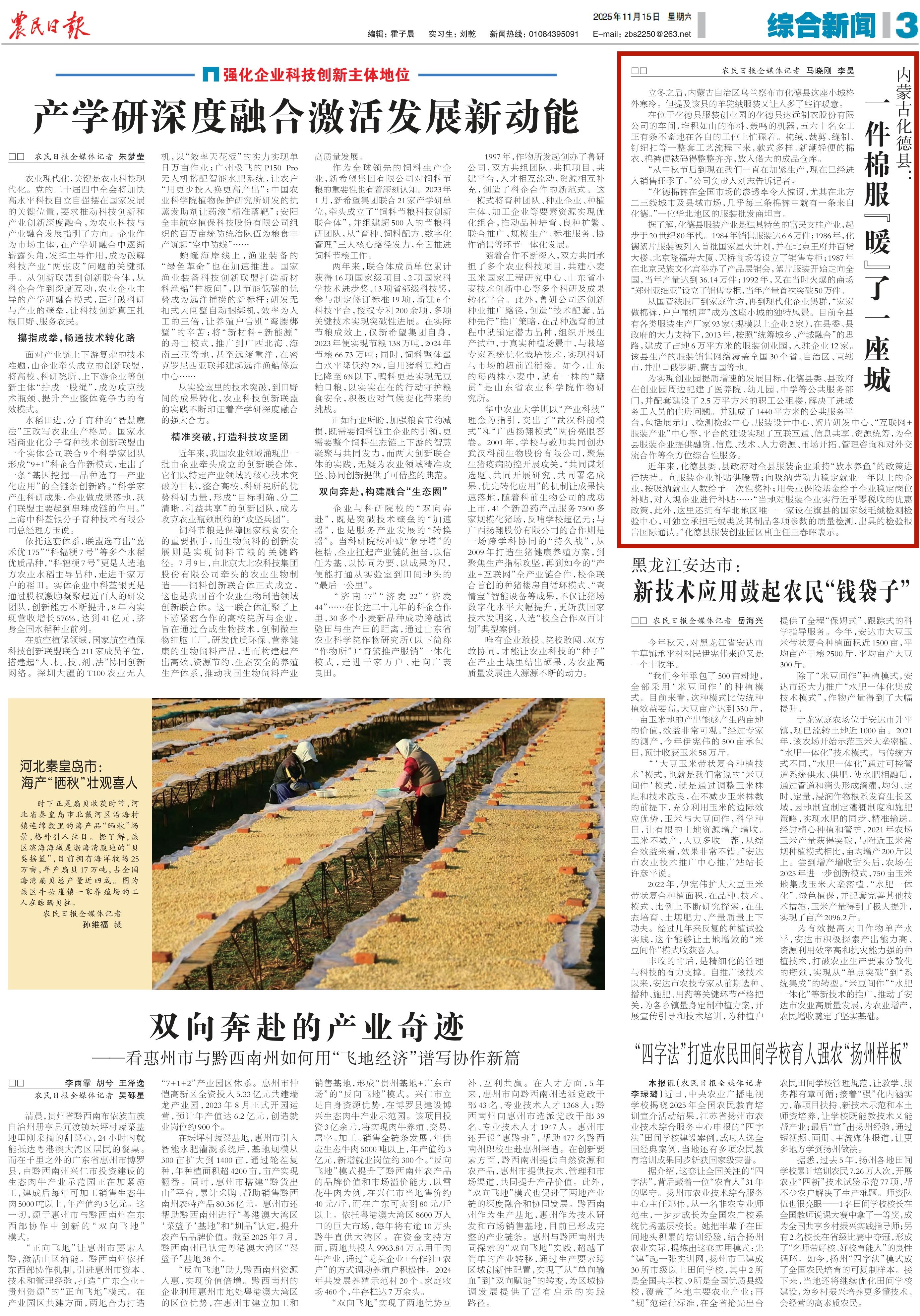 2025年11月15日《農(nóng)民日?qǐng)?bào)》第3版