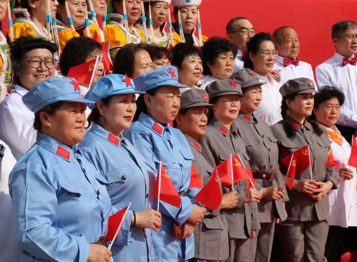 開展建黨百年群眾文化系列活動以來,呼市共舉辦大型專場演出20余場。在人民公園設(shè)置了“永遠(yuǎn)跟黨走——群眾文化廣場”、“合唱廣場”、“廣場舞廣場”,給廣大群眾提供了參與建黨百年群體活動的集中展示平臺,進(jìn)一步豐富了廣大人民群眾的精神生活,營造出全社會感黨恩、頌黨恩的濃厚氛圍。此外,青城公園內(nèi)三個“主題廣場”設(shè)立后,廣大市民群眾也紛紛合影留念,自發(fā)組織起來唱紅歌、跳廣場舞,以多種形式積極參與活動。據(jù)統(tǒng)計,截至目前由群眾自發(fā)組織在社區(qū)、公園、廣場開展的展演活動近千余場,參與人數(shù)達(dá)幾十萬人次,掀起了建黨100周年群眾性文化活動的高潮。
