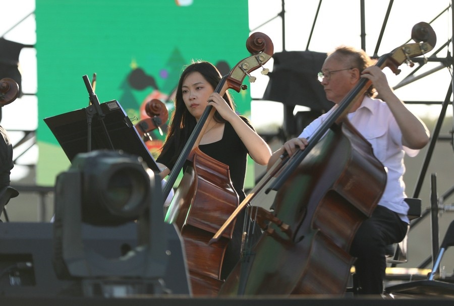 青山攬翠,林海歡歌。8月19日,內(nèi)蒙古烏蘭察布“森林之韻”蘇木山音樂季在蘇木山腳下的店子鎮(zhèn)盧家營(yíng)村繼續(xù)上演??罩幸暯窍碌囊魳芳狙莩霈F(xiàn)場(chǎng),燈光璀璨,人頭攢動(dòng)。樹樂隊(duì)、翅膀VS呼哈、劉文天、巫啟賢、陳雅森等演藝人員和北京藝鯤交響樂團(tuán),為游客帶來一場(chǎng)場(chǎng)視聽盛宴。