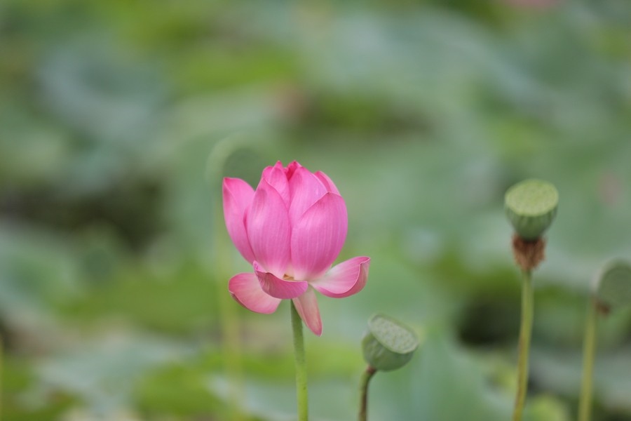 初秋時(shí)節(jié),水光瀲滟間,公園內(nèi)的滿池荷花嬌艷、荷葉青翠,漫步棧道中,仿佛置身于一幅詩意的畫卷。
