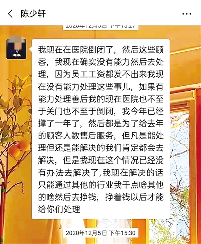 陳少軒在顧客追問下回復(fù):醫(yī)院倒閉