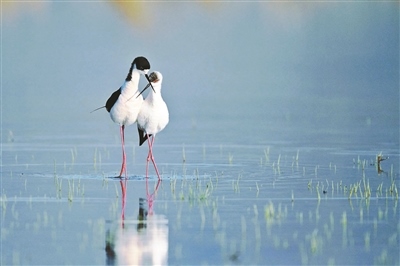 觀鳥者在密云區(qū)拍攝到的黑翅長腳鷸,系北京市2級保護鳥類