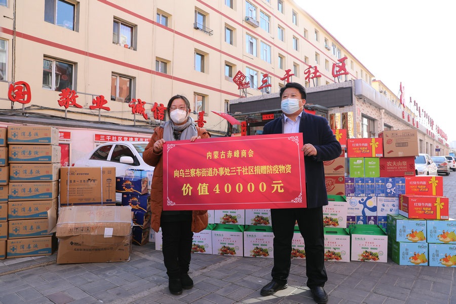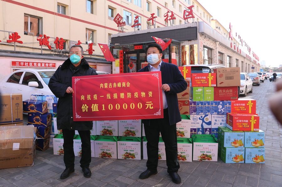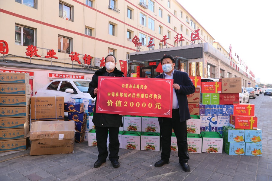 自疫情發(fā)生以來,內(nèi)蒙古赤峰商會慰問了呼和浩特市公安局賽罕區(qū)分局昭烏達路派出所,向抗疫一線公安民警表達慰問,并為他們送去第一批價值1萬元的抗疫物資;商會執(zhí)行會長張學春向新城區(qū)城市管理局捐贈5萬元防疫物資,用于一線疫情防控;商會副會長單位內(nèi)蒙古乾碩防水工程有限公司分別向呼和浩特市4個社區(qū)2個衛(wèi)生院捐贈了價值10萬元的防疫物資及生活必需品;商會聯(lián)合副秘書長單位蒙影影業(yè),走進玉泉區(qū)清泉街社區(qū),慰問抗疫一線工作人員,并為他們送去價值5000元的生活物資;商會聯(lián)合副會長單位友鵬實業(yè)集團,向回民區(qū)大慶路小學、伊利健康谷、東庫街社區(qū)、呼和浩特職業(yè)學院等防控一線捐贈價值10萬元的防疫物資。
