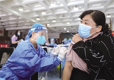 在接種臺前,醫(yī)護(hù)人員分工明確,核驗接種人群身份信息、詢問病史和疫苗接種情況,每個環(huán)節(jié)有條不紊地進(jìn)行著。