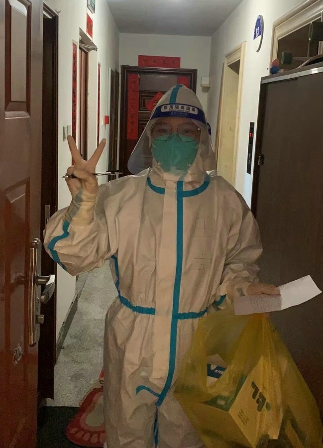 即使單元出現(xiàn)陽性病例,田宇依舊穿著防護服,佩戴好口罩,第一時間將物資運送到位。有時物資集中配送,田宇需要往返多次搬運大量的物資。有時鄰居填錯地址,還需要到別的居民樓幫忙找尋。但她從未有過一句怨言,面對鄰居們的感謝和贊揚,她總是憨厚地和大家說“不要客氣”。當鄰居們因為小區(qū)的封控管理或物資短缺產生焦慮或不滿時,她也會在第一時間解釋說明,疏導大家的情緒。