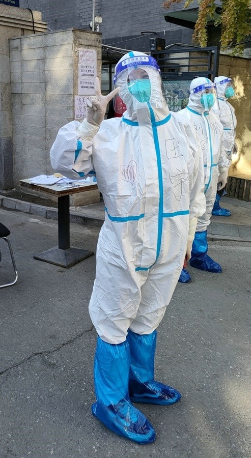 當她所居住的樓棟隔壁單元出現(xiàn)陽性病例后,前期一同工作的志愿者無法繼續(xù)上崗,田宇毅然承擔起整棟樓的工作量。