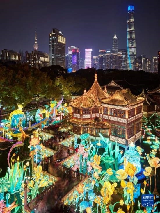 2月15日,市民和游客在上海豫園九曲橋賞燈。