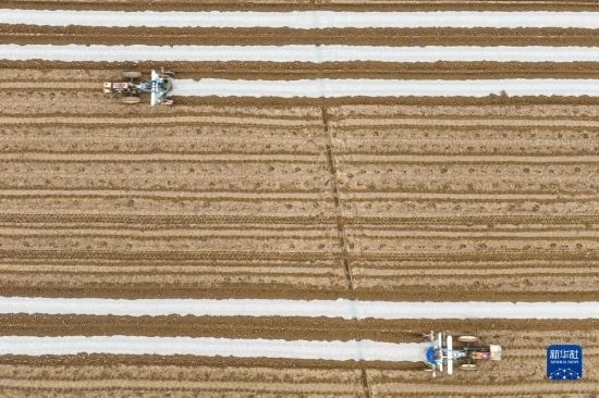 2月16日,村民在湖北省武漢市經(jīng)開區(qū)鄧南街田間進(jìn)行播種作業(yè)(無人機(jī)照片)。