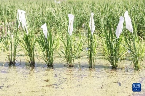 這是2月22日在海南三亞的國家南繁科研育種基地拍攝的已完成雜交實(shí)驗(yàn)的水稻。