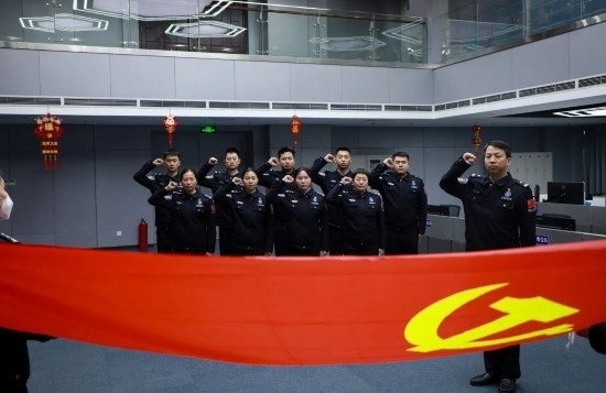 圖為陳靜波帶領(lǐng)“陳靜波云端前哨突擊隊(duì)”隊(duì)員開(kāi)展重溫入黨誓詞活動(dòng)。