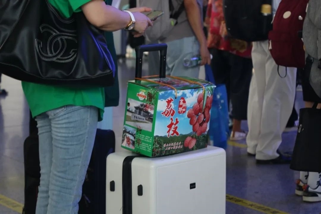 “我們會提前留足票源、增加運力、增設(shè)安檢口,方便旅客快速進站。安檢口提前備好透明膠帶,提供給攜帶荔枝的旅客加固包裝使用?!泵菊鹃L陳桓介紹。