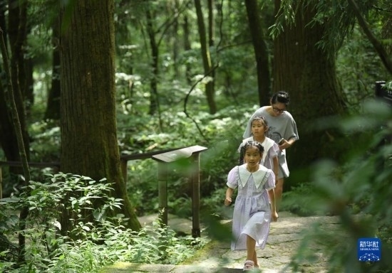 7月11日,人們在杭州臨安天目山風(fēng)景區(qū)游玩。