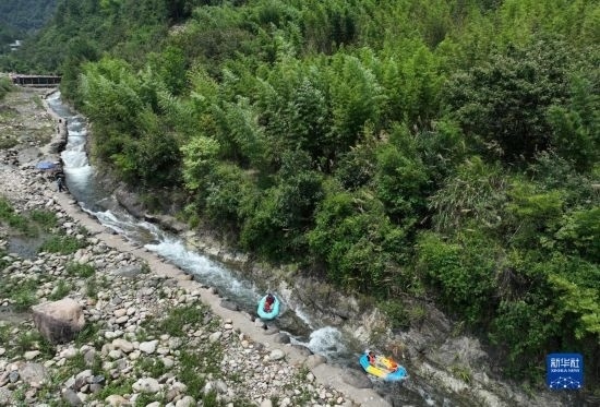 7月11日,人們在杭州臨安高虹鎮(zhèn)江南秘境游玩(無人機(jī)照片)。