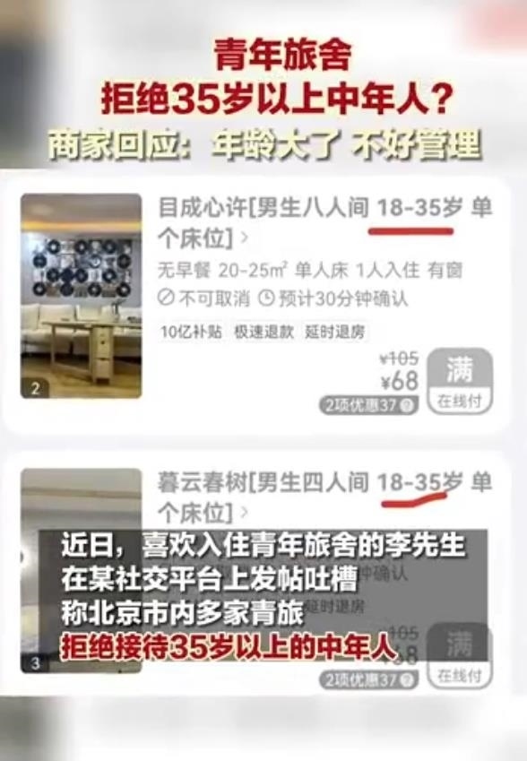 近日,#青旅不接待35歲以上人群#話題沖上熱搜,引發(fā)熱議。該話題源于一網(wǎng)友發(fā)布的帖子。該帖子表示,某平臺上北京不少青旅商家拒絕年齡35歲以上的人群入住。該網(wǎng)友詢問原因,得到的回答是“年齡大的上下床不安全容易出事?!睂Υ舜饛?,不少網(wǎng)友不能認同,認為是“借口”。