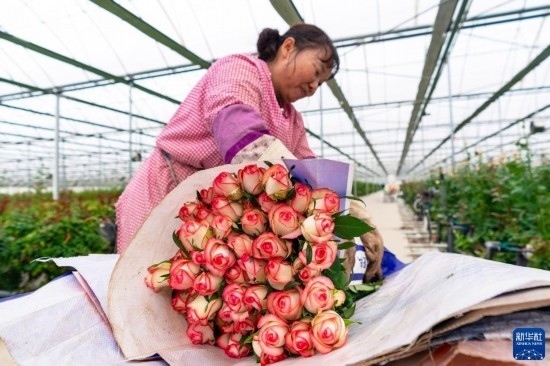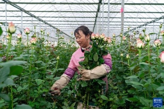 清晨,在云南省昆明市晉寧區(qū)云天化晉寧花卉產(chǎn)業(yè)現(xiàn)代化示范園內(nèi),品類各異的鮮花競(jìng)相綻放,花農(nóng)們?cè)诂F(xiàn)代化大棚里忙著采摘、搬運(yùn)。云天化晉寧花卉產(chǎn)業(yè)現(xiàn)代化示范園是集育苗、智能溫室大棚、水肥一體化、無土綠色栽培、全程數(shù)字化管理系統(tǒng),以及鮮切花采后處理、預(yù)冷儲(chǔ)藏等為一體的高標(biāo)準(zhǔn)設(shè)施農(nóng)業(yè)產(chǎn)業(yè)園區(qū),年產(chǎn)鮮切花1.6億枝。
