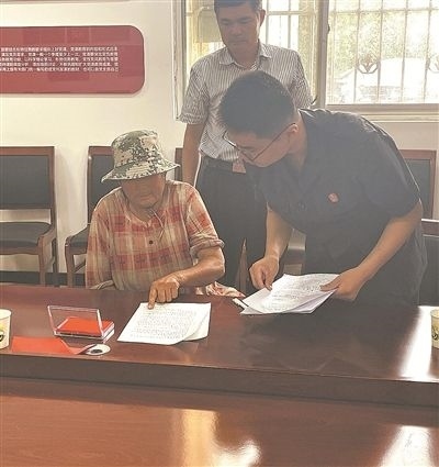 圖①:法官找時(shí)任村支書(shū)了解幫工情況。