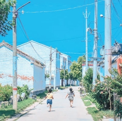 劉莊村的孩子們?cè)诖迓飞湘覒颉?/p>