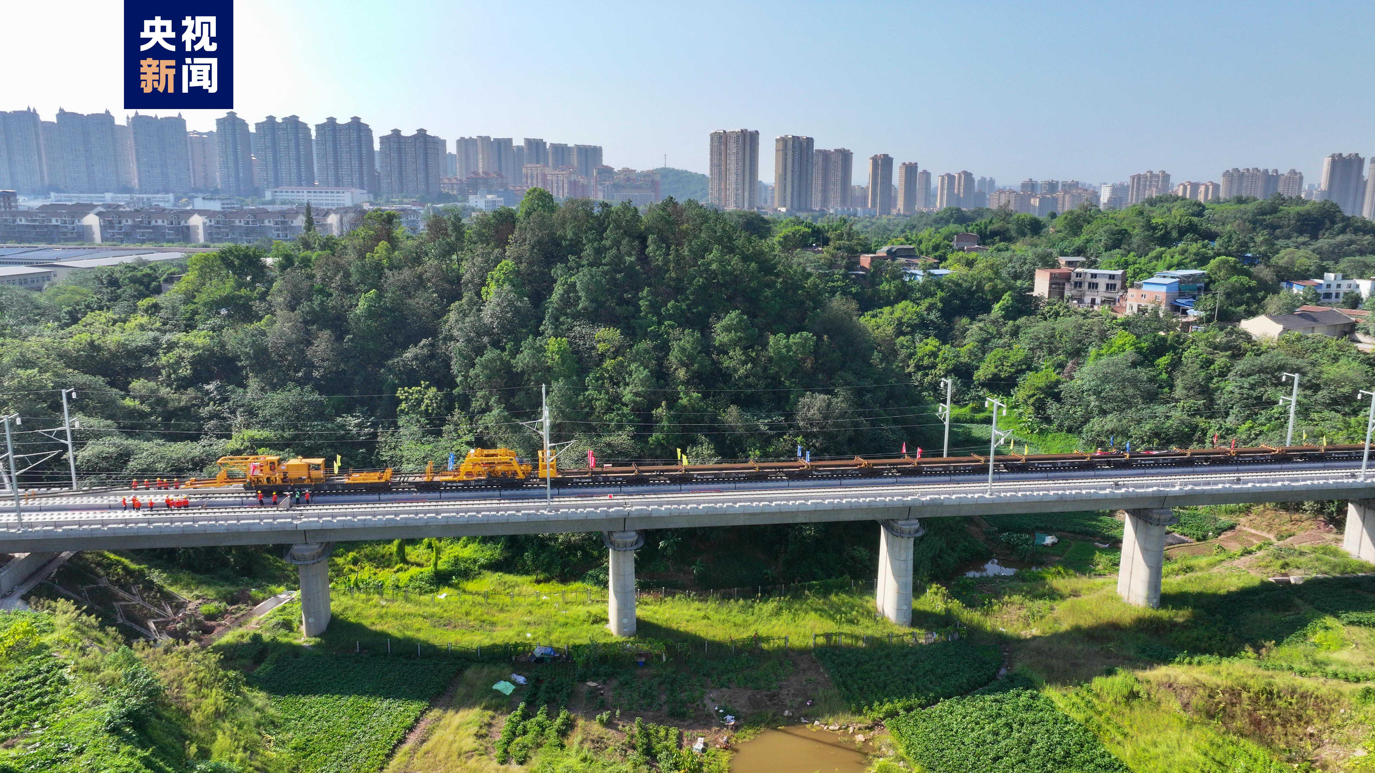 渝昆高鐵是全國(guó)鐵路“八縱八橫”主通道之一京昆通道的重要組成部分,渝昆高鐵川渝段位于我國(guó)重慶市和四川省境內(nèi),正線(xiàn)全長(zhǎng)約292公里,設(shè)計(jì)時(shí)速350公里,全線(xiàn)已進(jìn)入鋪軌、線(xiàn)上工程及站房建設(shè)沖刺階段,此次鋪軌(含站線(xiàn))總里程共約550公里,其中正線(xiàn)約528公里,站線(xiàn)約20公里,95組道岔等施工任務(wù)。