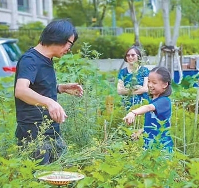 社區(qū)居民在創(chuàng)智農(nóng)園了解種植相關(guān)知識。上海四葉草堂青少年自然體驗服務(wù)中心供圖