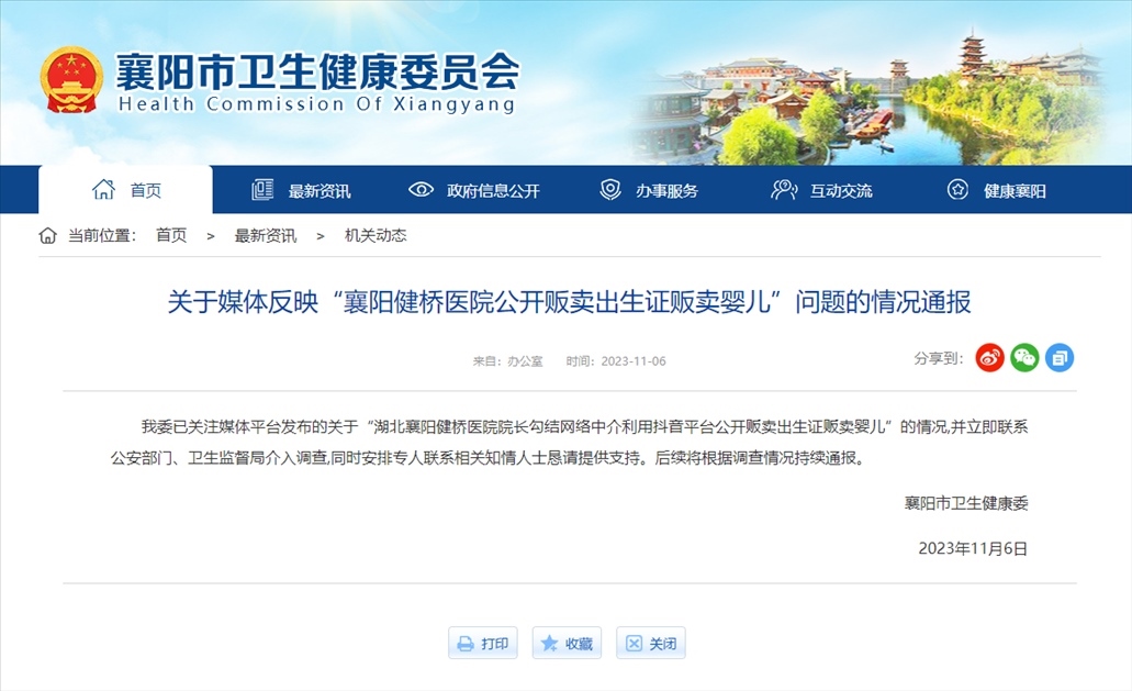 ·醫(yī)院院長被舉報涉嫌販賣出生證,襄陽衛(wèi)健委通報:聯(lián)系公安部門、衛(wèi)生監(jiān)督局介入調(diào)查,同時安排專人聯(lián)系相關知情人士懇請?zhí)峁┲С帧:罄m(xù)將根據(jù)調(diào)查情況持續(xù)通報。